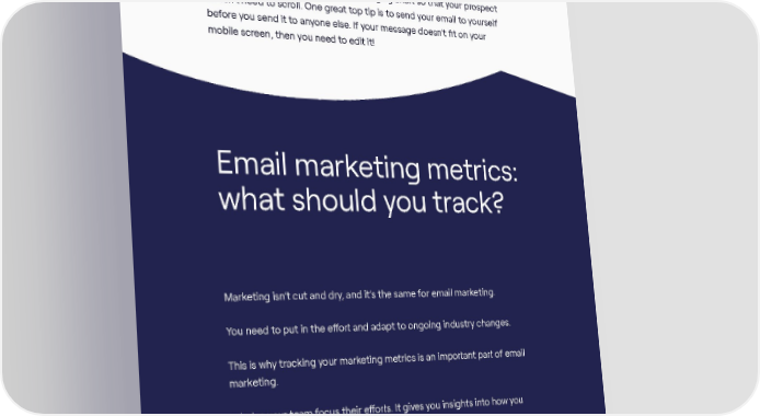 So your email marketing needs to work on both desktop and mobile. If it doesn’t, you may lose out on sales. The rule of thumb is to keep your messaging short so that your prospect doesn’t need to scroll. One great top tip is to send your email to yourself before you send it to anyone else. If your message doesn’t fit on your mobile screen, then you need to edit it! Email marketing metrics: what should you track? Marketing isn’t cut and dry, and it’s the same for email marketing. You need to put in the effort and adapt to ongoing industry changes. This is why tracking your marketing metrics is an important part of email marketing. It helps your team focus their efforts. It gives you insights into how you can improve your campaigns going forward. Here’s a list of Cognism’s must-track email marketing metrics: The AThe ANYTNYTHING BUT BHING BUT BAASIC gSIC guide tuide to emo email mail markarkeetingting / / 3636