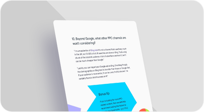 10. Beyond Google, what other PPC channels are worth considering? “I’m a massive fan of Bing Ads! It’s not a channel that’s used very much in the UK, but 12-20% of all UK searches are done on Bing. That’s a big chunk of the total UK audience. A lot of advertisers overlook it, but it can be much cheaper than Google.” “Luckily, you can import your Google ads to Bing. One thing though, the demographics on Bing tend to be older than those on Google. But, if your audience is more senior, it can be a very fruitful channel. I’ve certainly found a lot of success on it!” Bonus tip If you’re looking for more PPC- related content, then we definitely recommend adding the Adzooma blog to your bookmarks - you’ll find some great insights there. The Inbound Marketing Playbook / 21