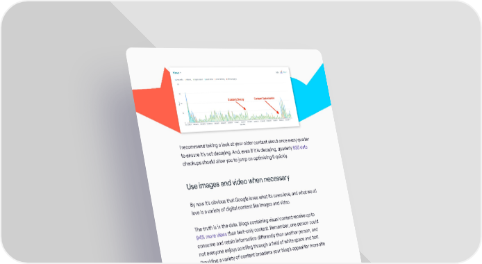 I recommend taking a look at your older content about once every quarter to ensure it’s not decaying. And, even if it is decaying, quarterly B2B data checkups should allow you to jump on optimising it quickly. Use images and video when necessary By now it’s obvious that Google loves what its users love, and what we all love is a variety of digital content like images and video. The truth is in the data. Blogs containing visual content receive up to 94% more views than text-only content. Remember, one person could consume and retain information differently than another person, and not everyone enjoys scrolling through a field of white space and text. Providing a variety of content broadens your blog’s appeal for more site visitors. Let’s not forget that Google pulls video snippets as well - typically for “how-to” type of search queries. Without video in your content repertoire, you could be missing out on audiences with visual content preferences. The Inbound Marketing Playbook / 43