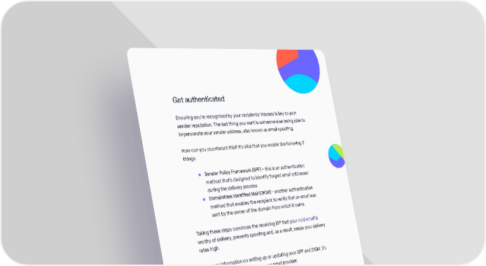 Get authenticated Ensuring you’re recognised by your recipients’ inboxes is key to your sender reputation. The last thing you want is someone else being able to impersonate your sender address, also known as email spoofing. How can you counteract this? It’s vital that you enable the following 2 things: • Sender Policy Framework (SPF) - this is an authentication method that’s designed to identify forged email addresses during the delivery process. • DomainKeys Identified Mail (DKIM) - another authentication method that enables the recipient to verify that an email was sent by the owner of the domain from which it came. Taking these steps convinces the receiving ISP that your cold email is worthy of delivery, prevents spoofing and, as a result, keeps your delivery rates high. For more information on setting up or updating your SPF and DKIM, it’s recommended that you contact your email provider. Own an IP address As your email marketing campaigns scale, you’ll need tools and processes that can cope with the volume. Once your output reaches 25,000 emails per day, you should consider sending on a dedicated IP address. This ensures that only your company’s emails are routed through (as opposed to a shared IP that hosts several senders), so other campaigns’ poor marketing won’t affect your reputation. The Inbound Marketing Playbook / 78